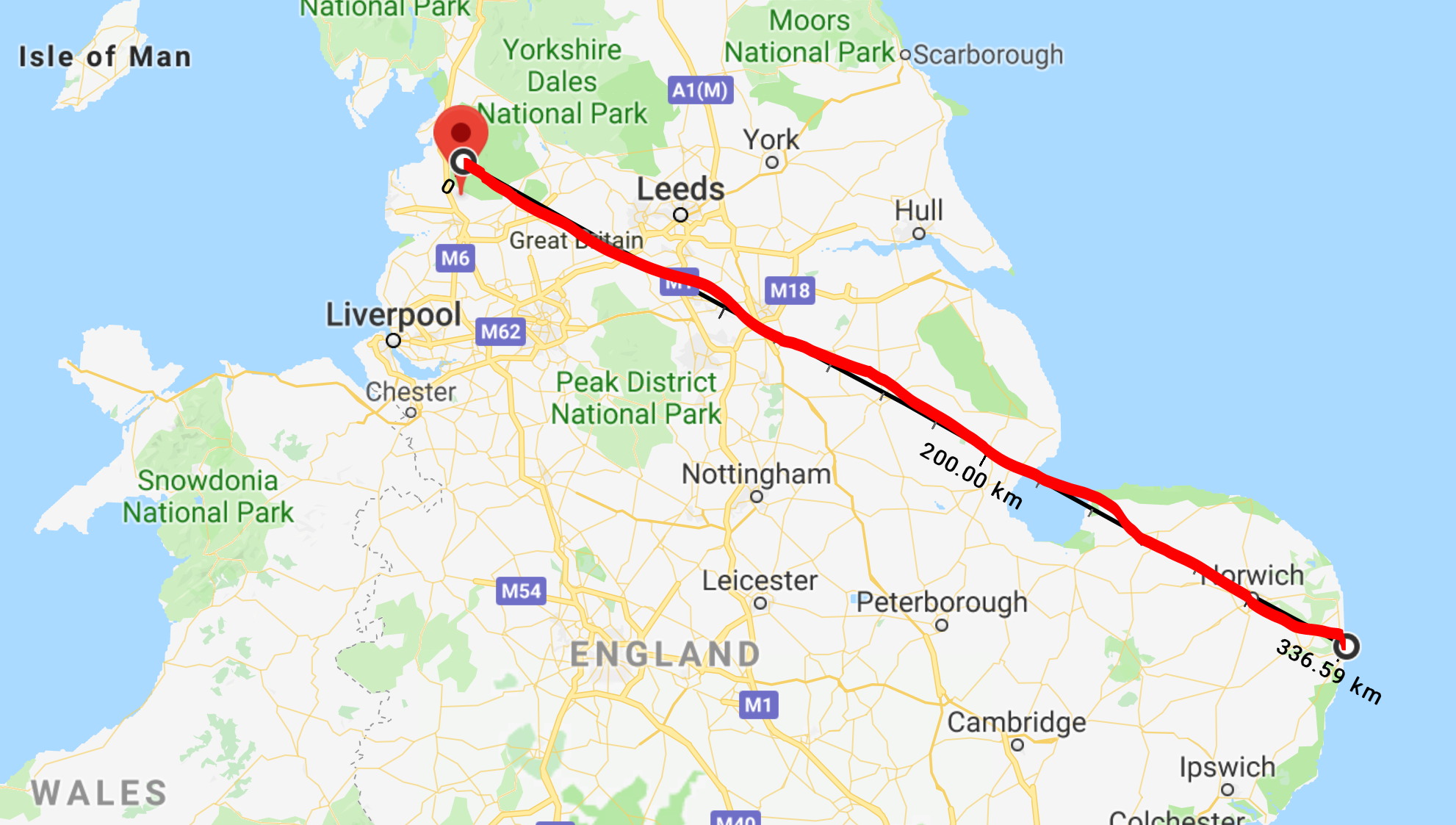 lowestoft, suffolk to goosnargh, preston, lancashire