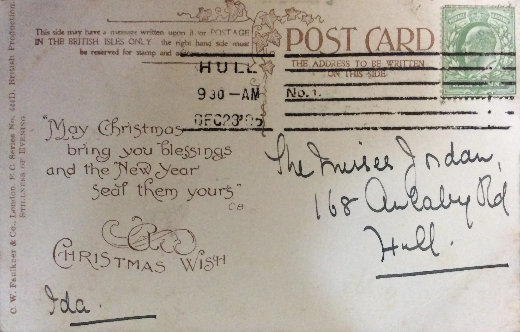 The other point to note that it is sent to three people. It seems that Ida has put the minimum of effort into this card.