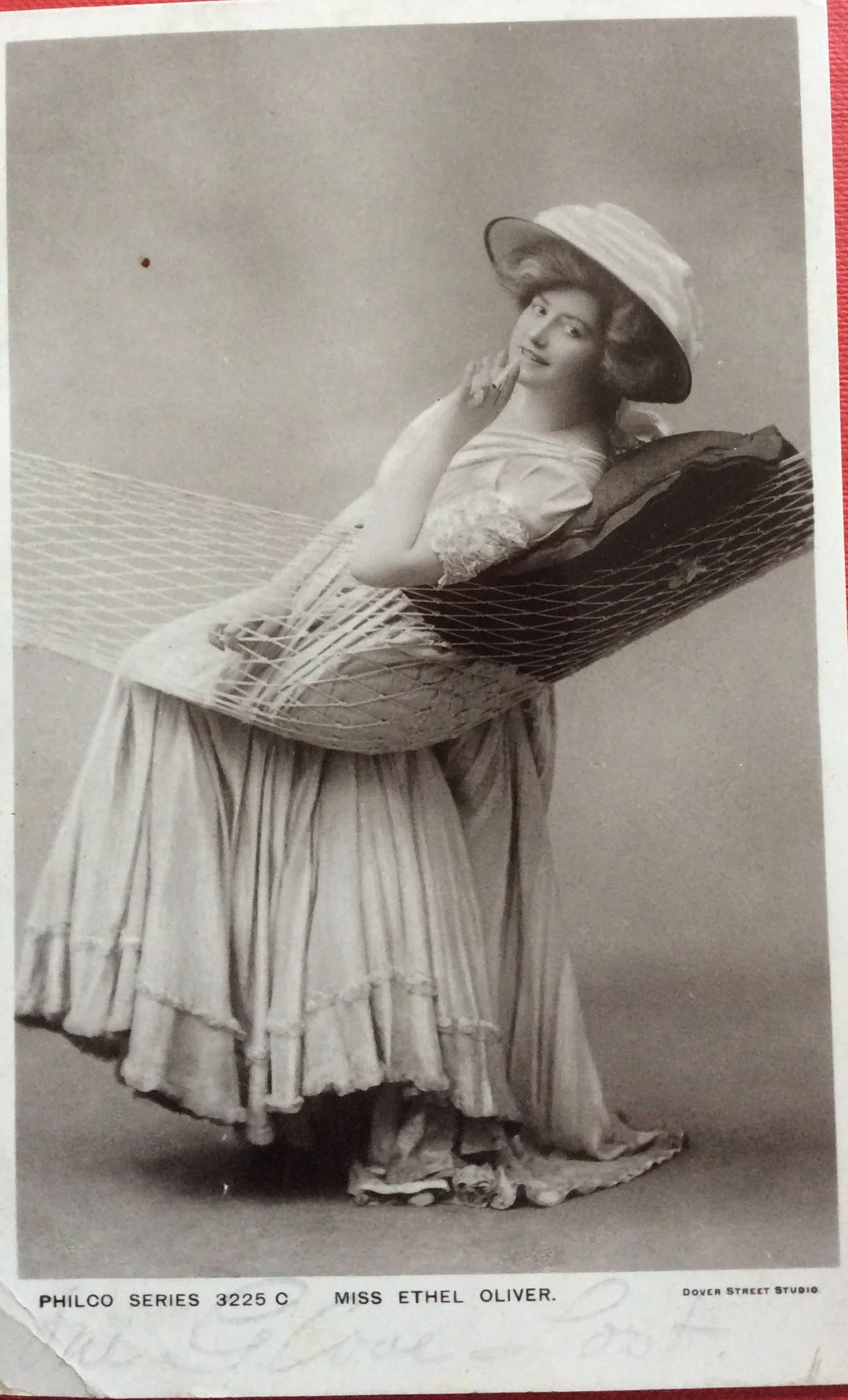 But the most intriguing thing about the card is that someone, maybe Barbara, maybe La Ian has handwritten something beneath the picture. It is quite faint and appears to say "One Glove Lost". It feels like a line from a song or a play or the title of a show. Was this something that Ethel Oliver appeared in or was famous for? A mystery indeed.
