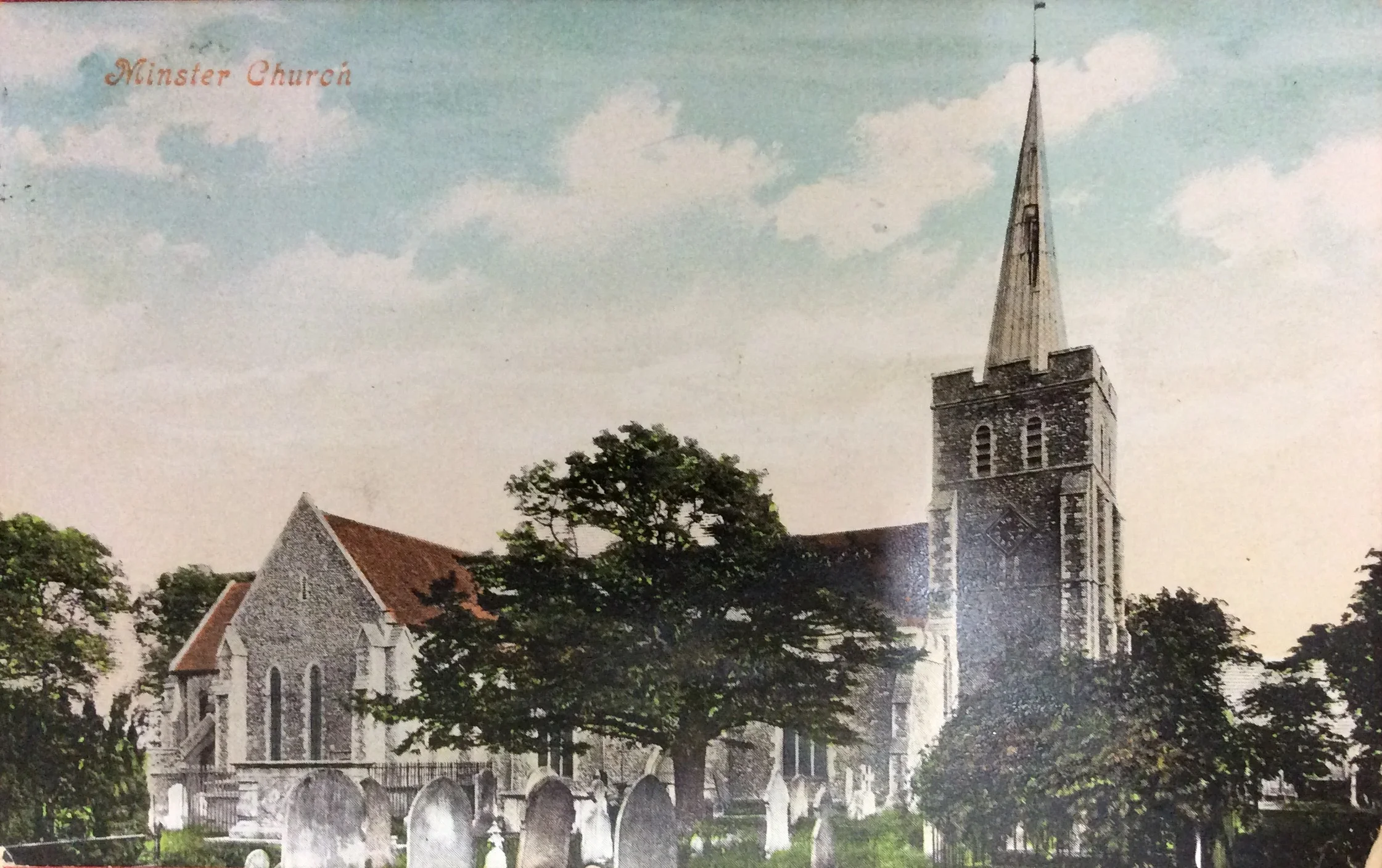 The picture on the card is labelled Minster Church which is confusing because a minster is a particular type of church. However this label actually refers to the church in Minster-In-Thanet, a village near Ramsgate. (https://en.wikipedia.org/wiki/Minster-in-Thanet)
