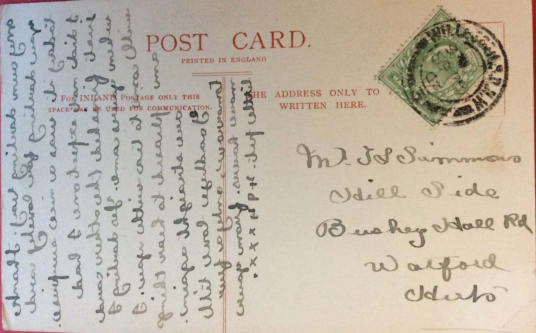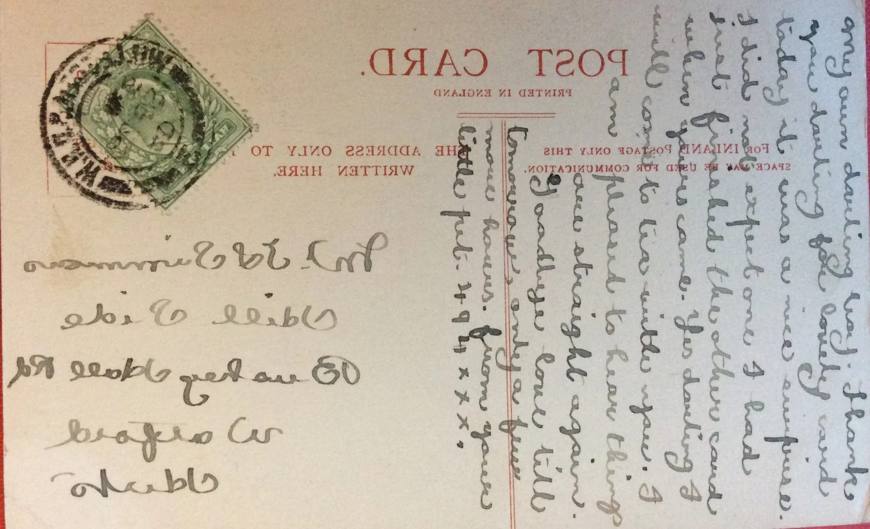 This is the third of four postcards, all posted in September 1907. As a trio they are discussed in the commentary that accompanies the first which can be found at the link at the bottom of the page.