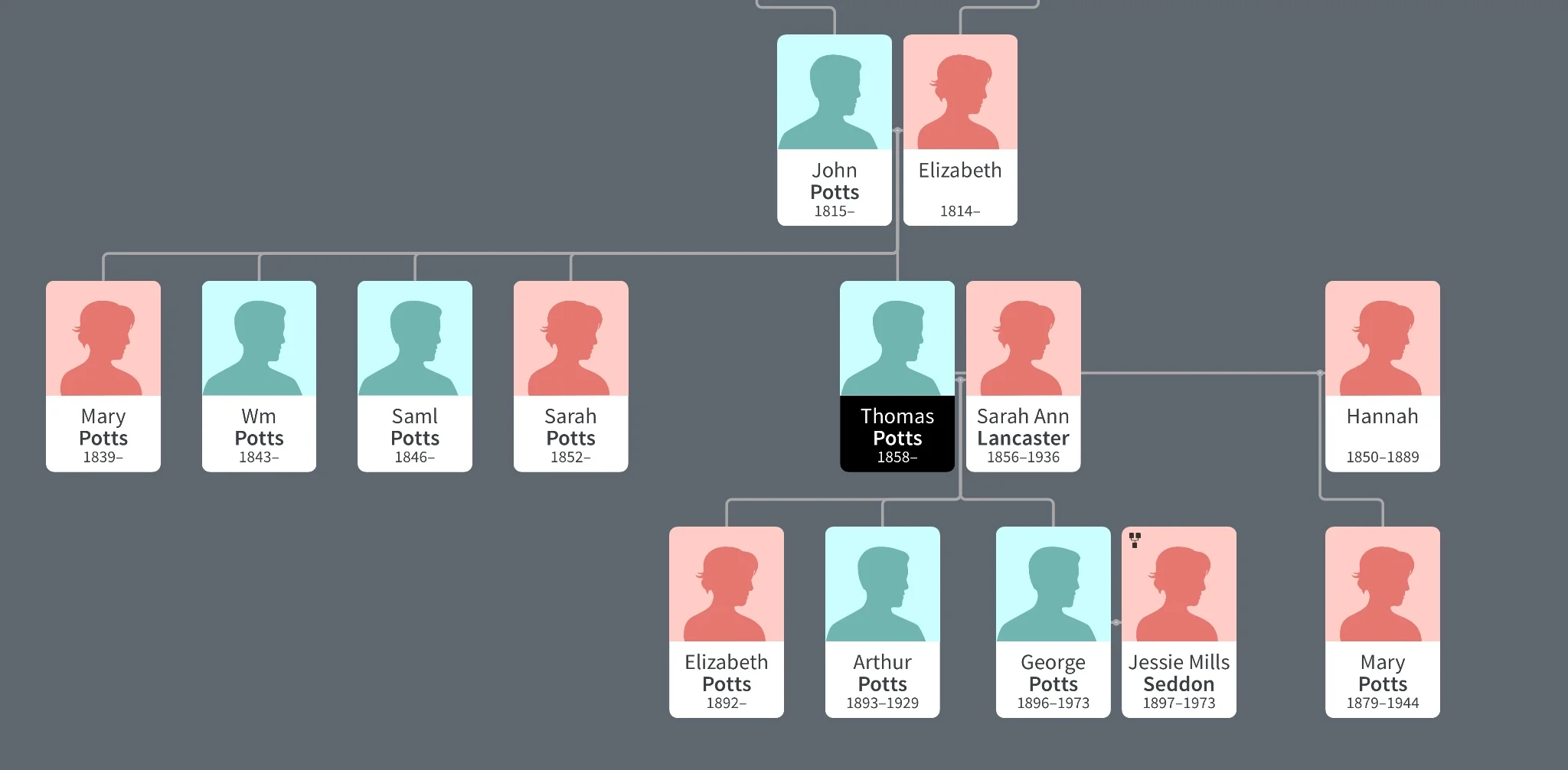 Arthur Potts (1893-1929) was the son of Thomas Potts and Sarah Ann Lancaster. He did not marry.