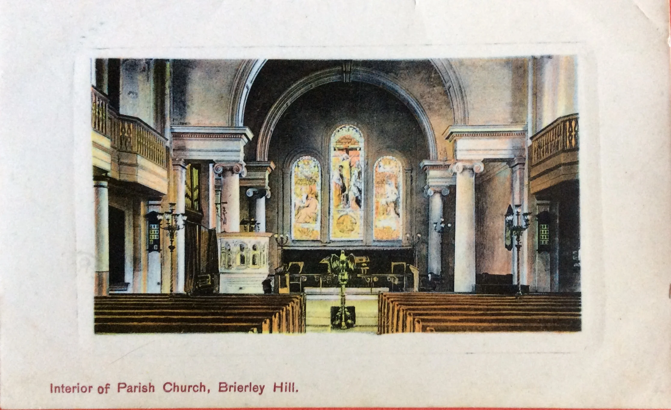The picture on the card shows the interior of the parish church at Brierley Hill. There does not seem to be anything relevant about that church or that location.