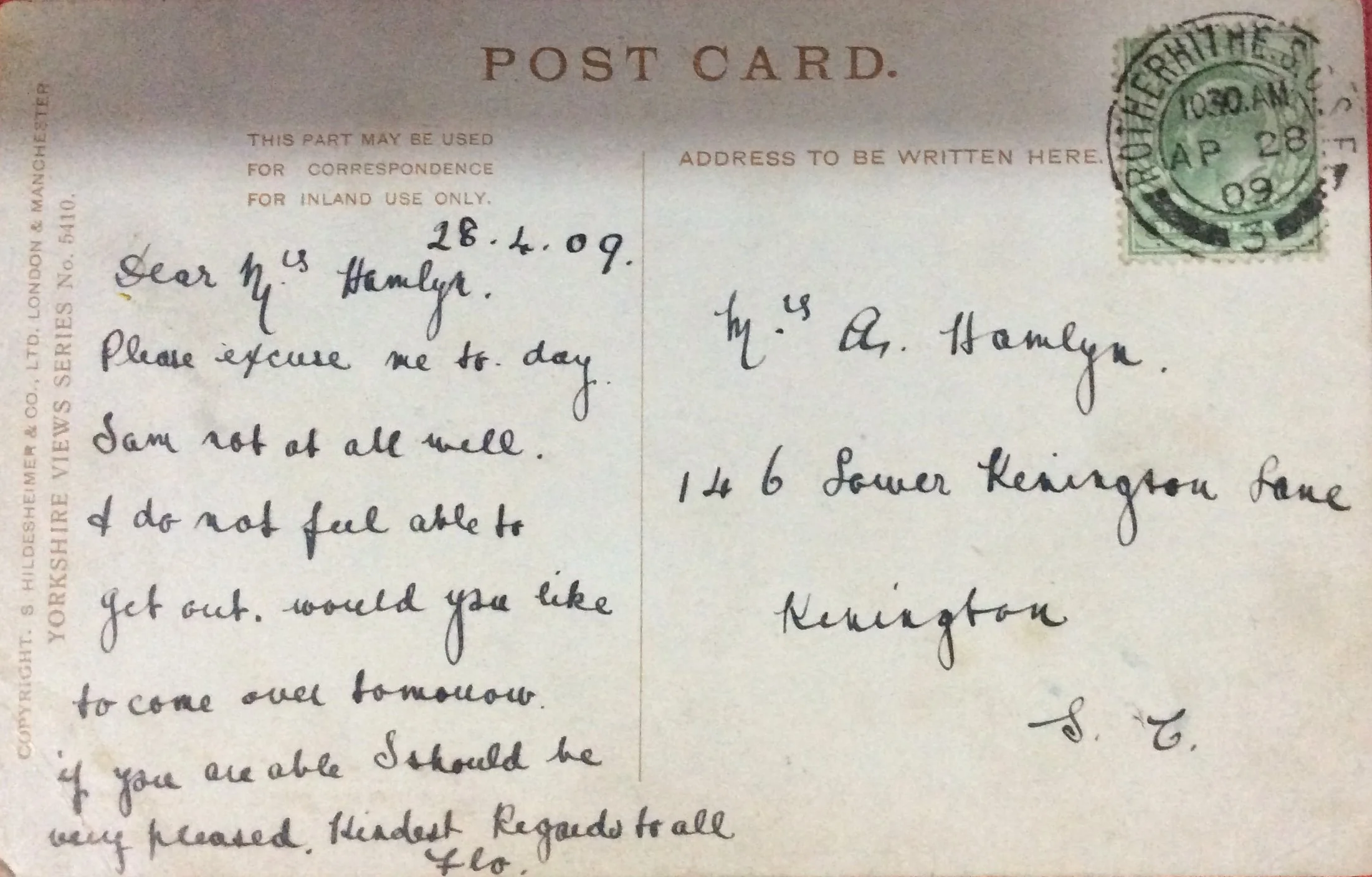 april 28th 1909 flo to alice maud Hamlyn nee leach