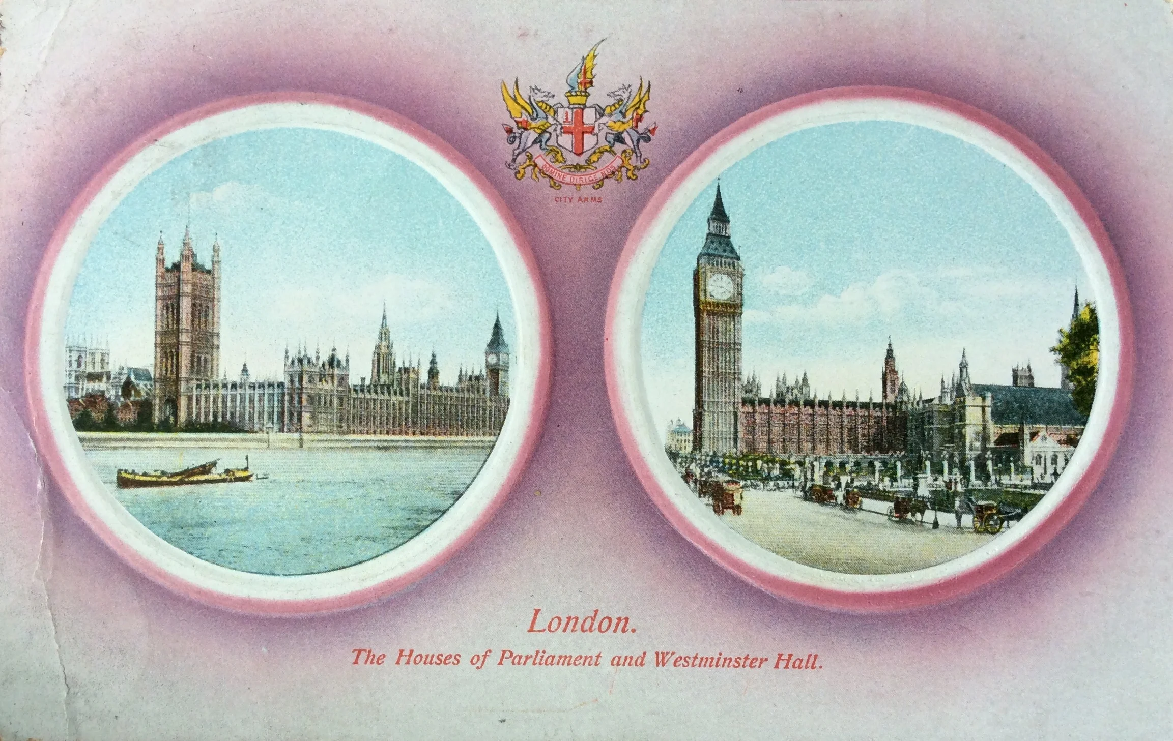 The picture shows two views of iconic London landmarks although it refers to Westminster Hall rather than Big Ben.