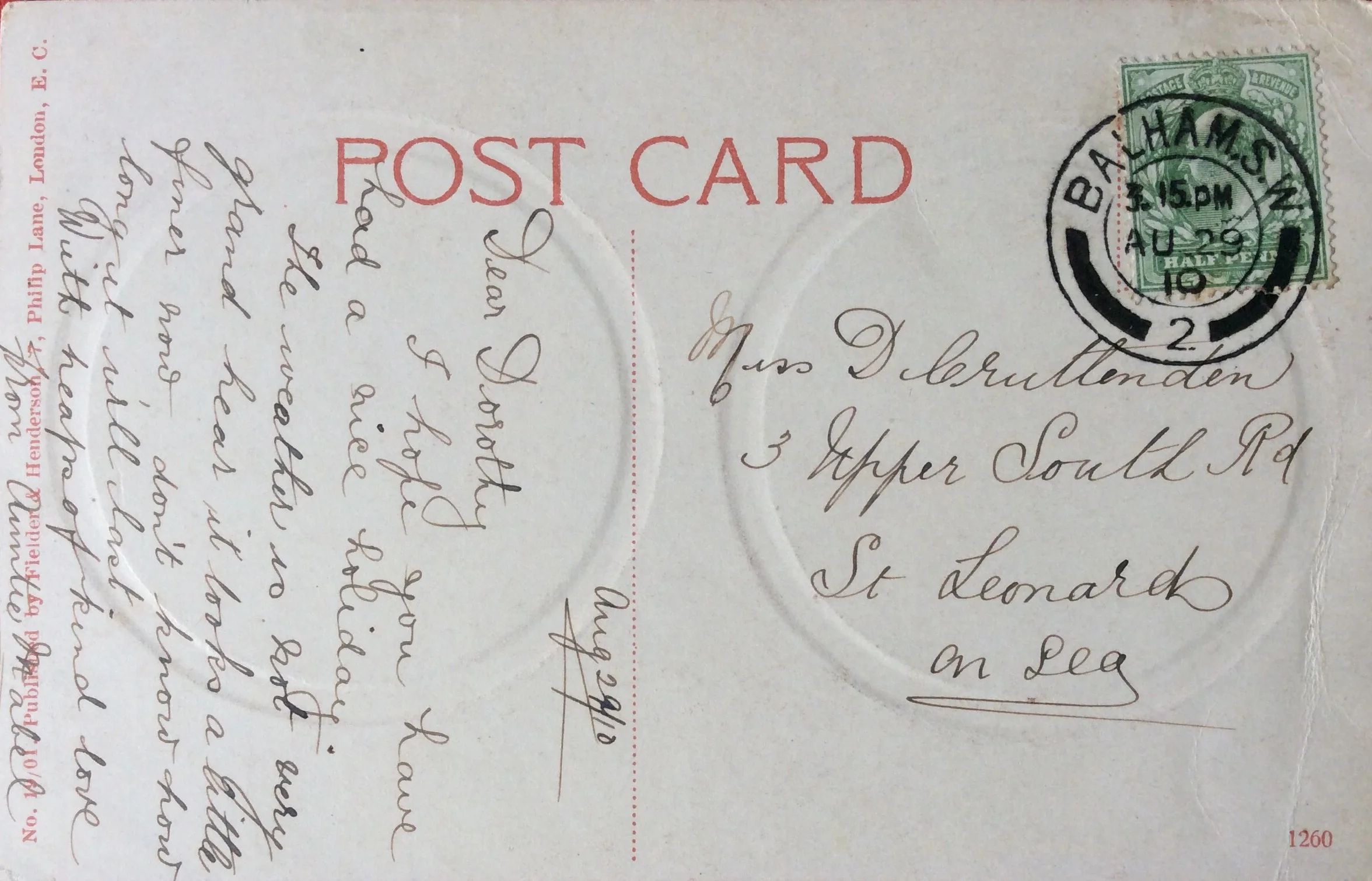 The message tells us nothing more than that Dorothy has been on holiday, that Mabel lives in Balham and that the weather is poor.
