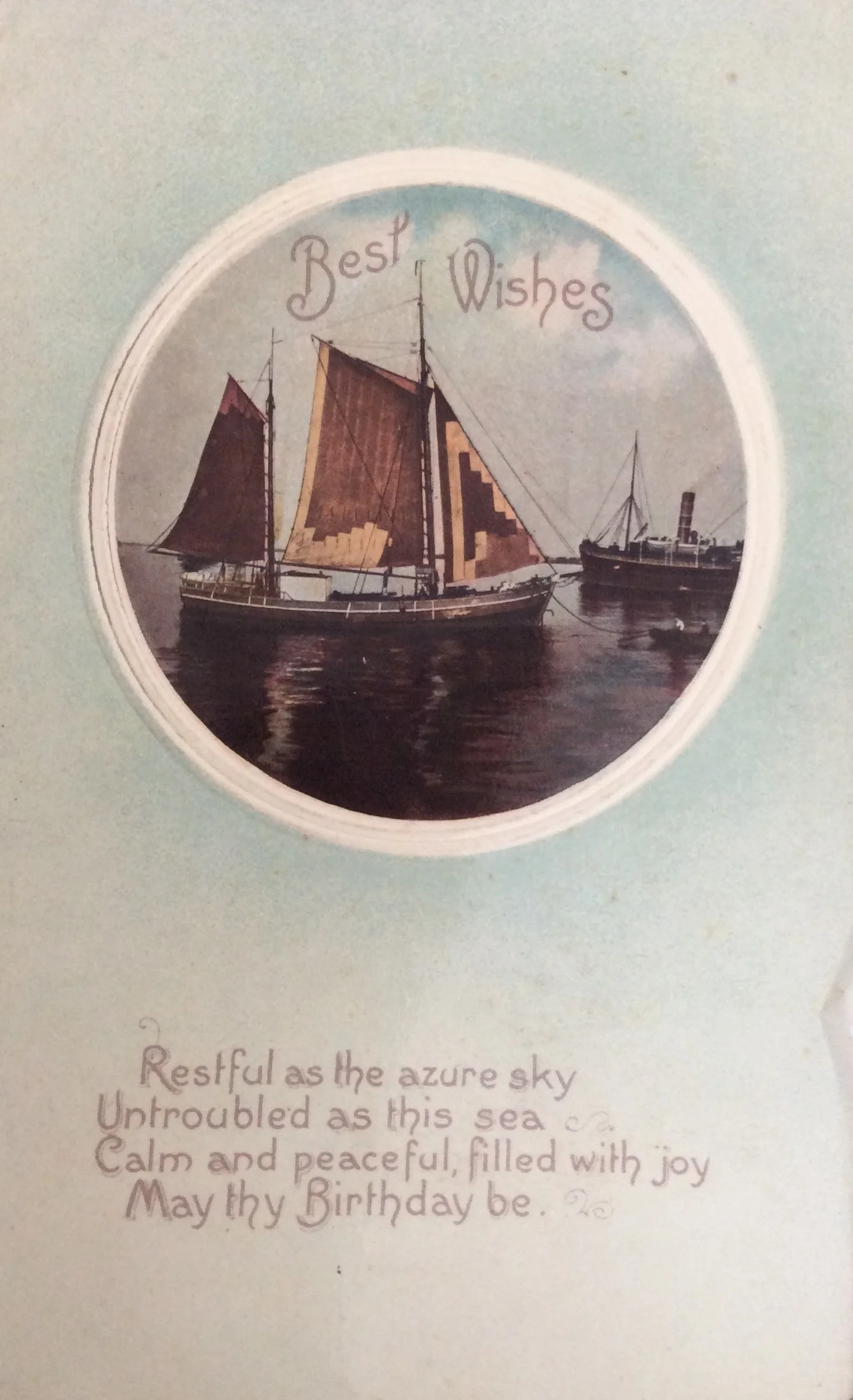 There were some strange birthday postcards in 1912 and this is one of them. What is the significance of the sea?