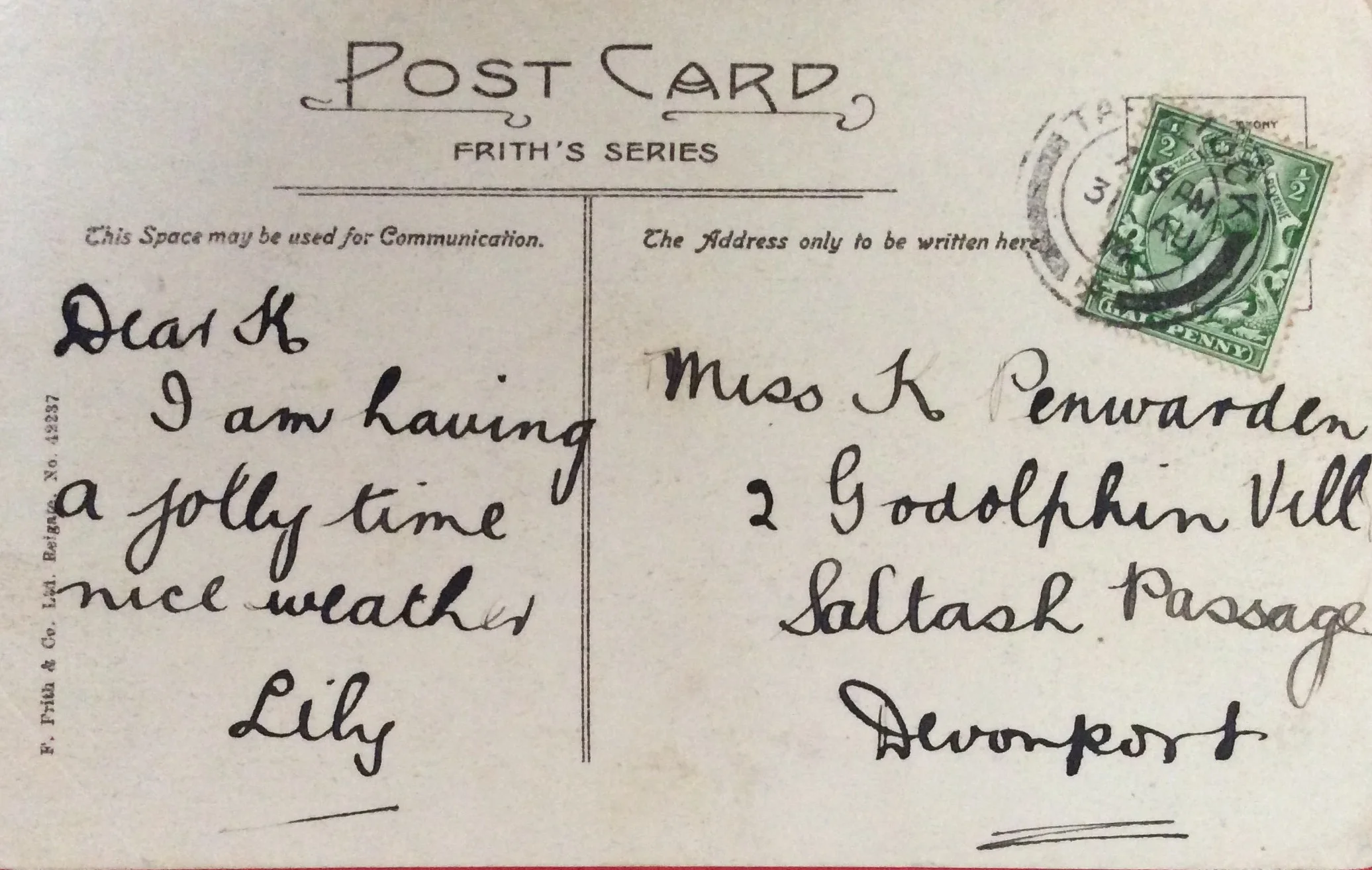 august 31st 1914 lily to Katie bennett penwarden