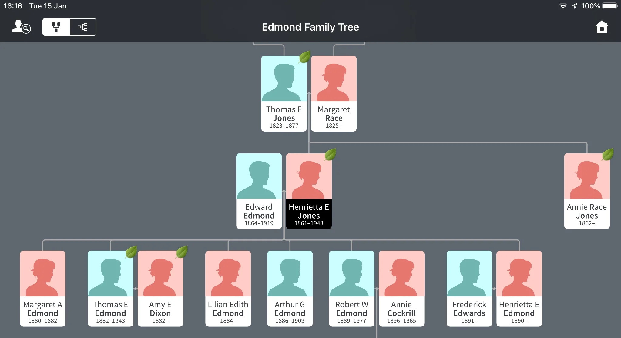 Henrietta Eleanor Edmond nee Jones (1861-1943) was the daughter of Thomas Evan Jones (1823-1877) and Margaret Race (1825-?). Thomas was a Master Mariner.