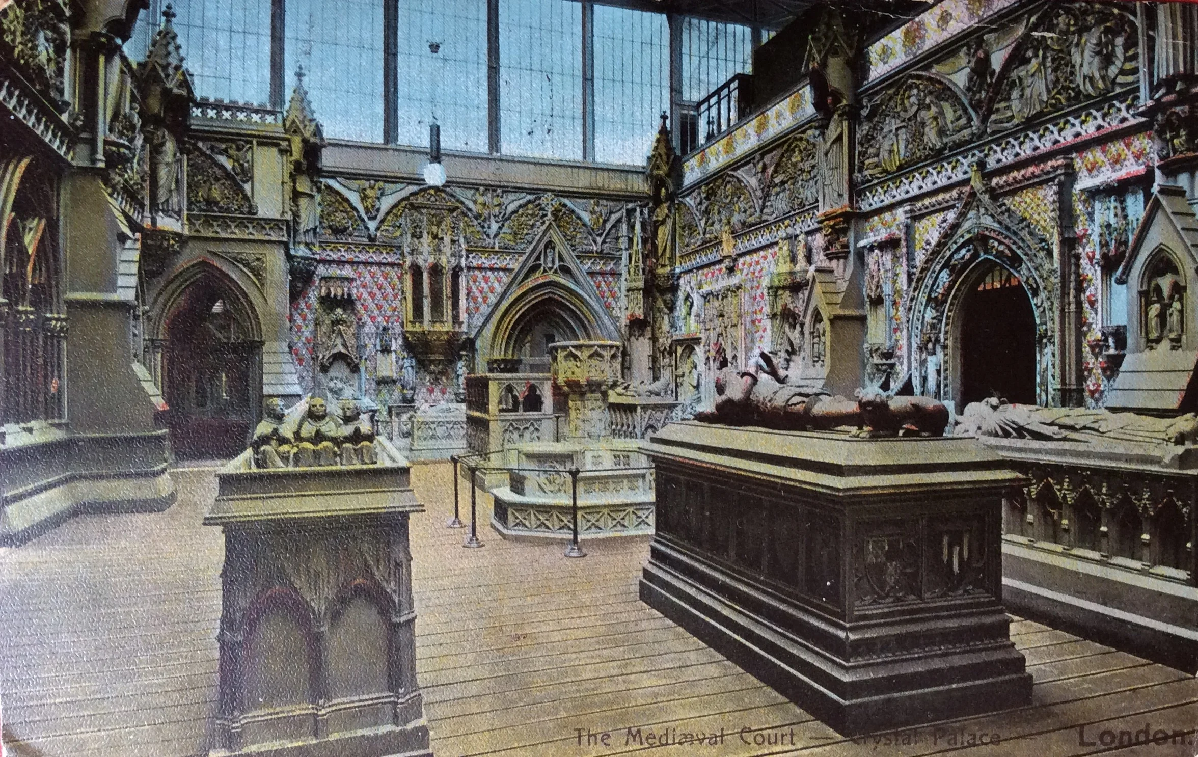 The picture shows a view of the Medieval Court display at the Crystal Palace for the Great Exhibition. It does not appear to have any connection with the family or the message.